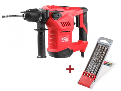 рукоятка,2 зубила, 3 сверла, смазка для буров и зубил |