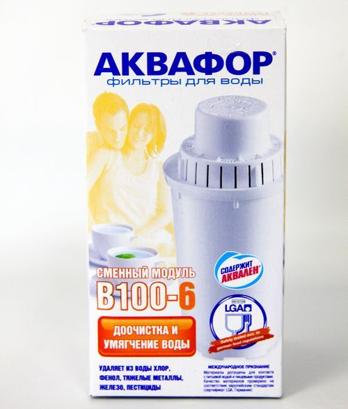 Модуль В100-6 поглощает избыточные катионы кальция и магния, которые в виде накипи оседают на стенках посуды и способны вызвать поломку нагревательного элемента чайника. Удаление солей жесткости идет путем ионного обмена и осуществляется в гранулах ионообменной смолы. Катионы кальция и магния задерживаются, а в воду поступают безопасные катионы натрия и водорода. Содержание ионообменной смолы в сменном модуле подобрано таким образом, чтобы рН питьевой воды существенно не изменялось.