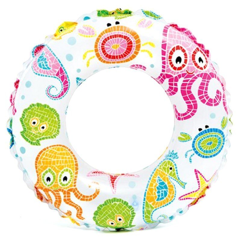 имеет веселую форму в виде спасательного круга Малибу. Благодаря яркой расцветке, круг не потеряется при купании. Изготовлен из плотного гипоаллергенного ПВХ т