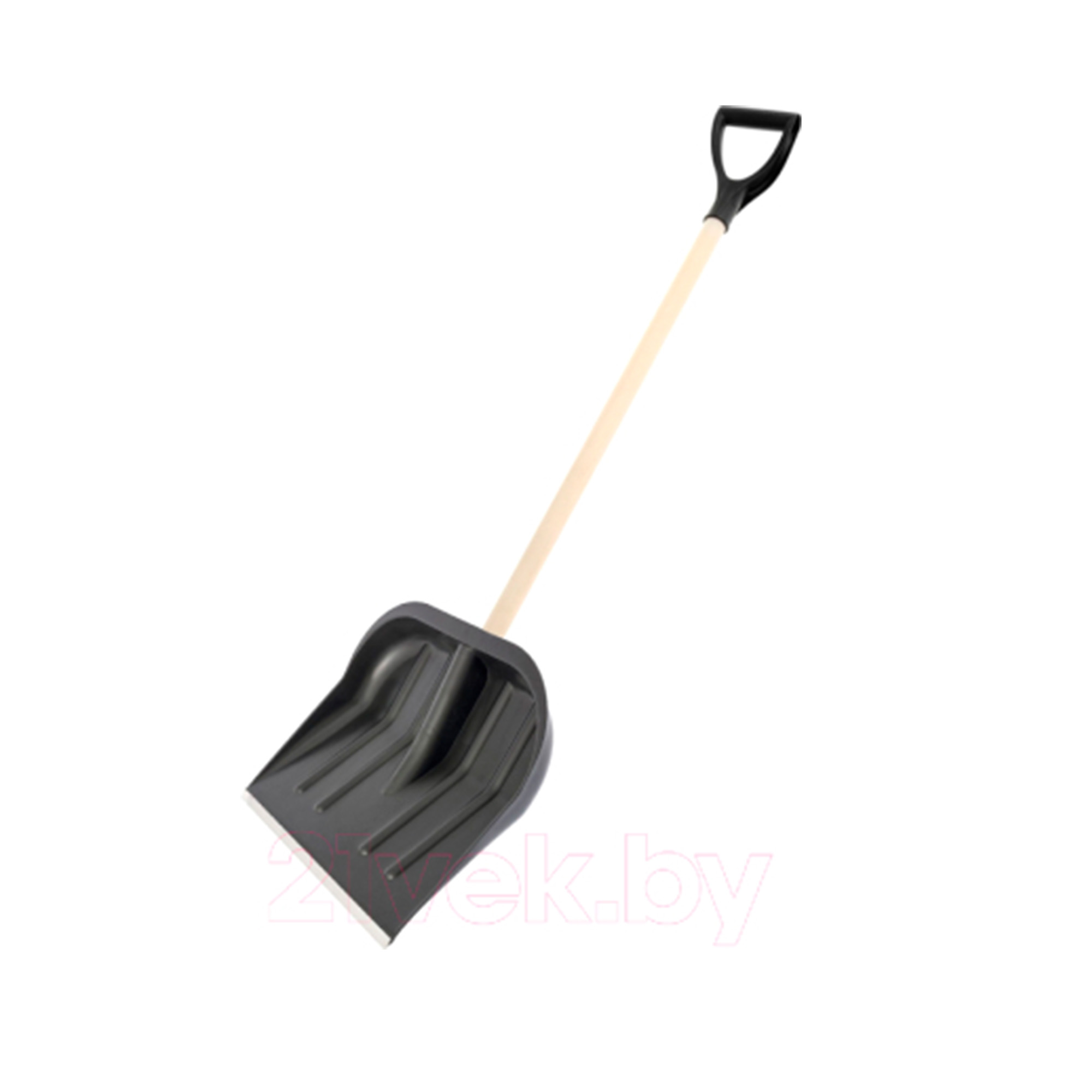 Ковш выполнен из морозоустойчивого высокопрочного пластика c добавлением ударопрочных присадок, что позволяет изделию выдерживать повышенные нагрузки при низких температурах. Изделие с оцинкованной планкой на заклепках, что придает лопате легкость и прочность.