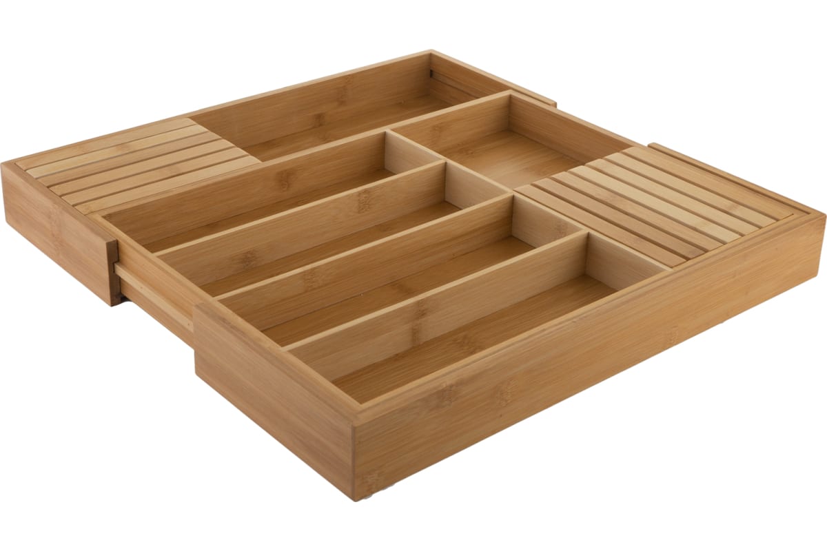 Лоток выполнен из экологически чистого 100% натурального бамбука. Благодаря водоотталкивающей пропитке лоток для посуды износостойкий и прослужит долгие годы.