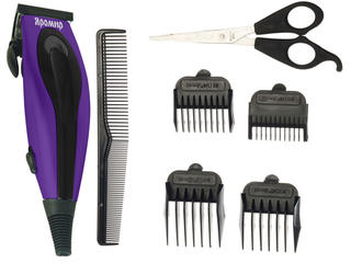 машинка, 4 насадки, расческа, ножницы, щетка, масленка |