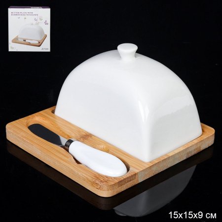 Масленка с крышкой для хранения и сервировки масла выполнена из высококачественного фарфора.