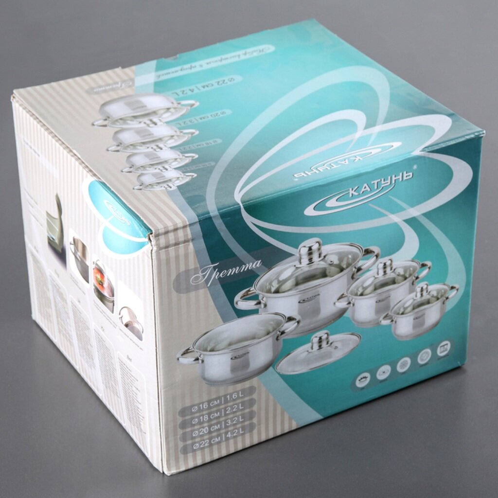 кастрюли: 1,6 л, 2.2 л, 3.2 л, 4.2 л; 4 крышки |