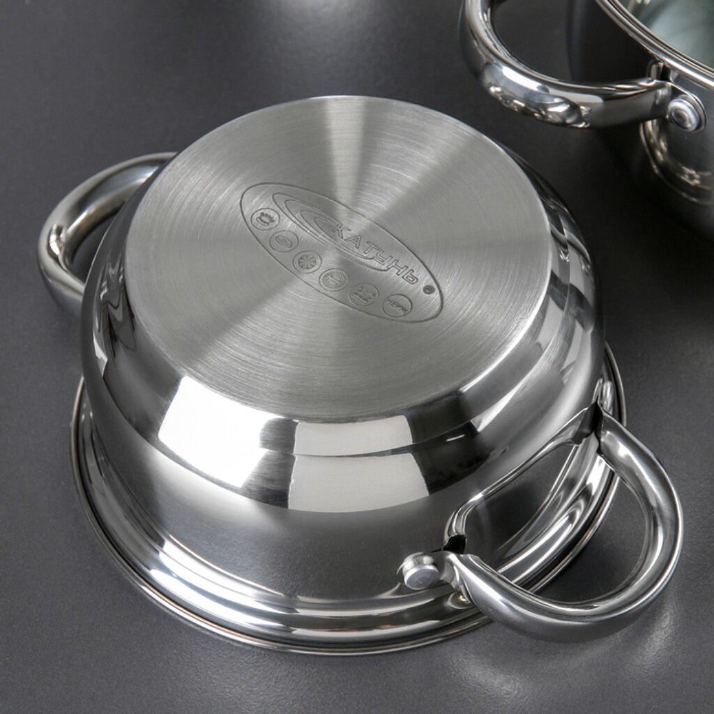 Нержавеющая сталь - материал, обладающий весьма гигиеничной поверхностью. Благодаря безупречной полировке без трещин и царапин, на поверхности кастрюль и сковород не скапливаются микробы и бактерии.