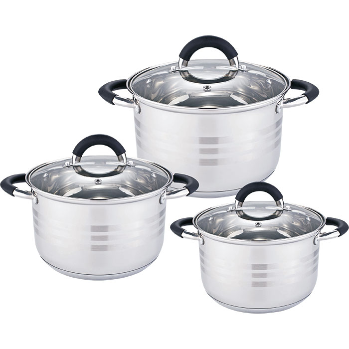 кастрюли: 2,2 л, 3 л, 4 л; 3 крышки |
