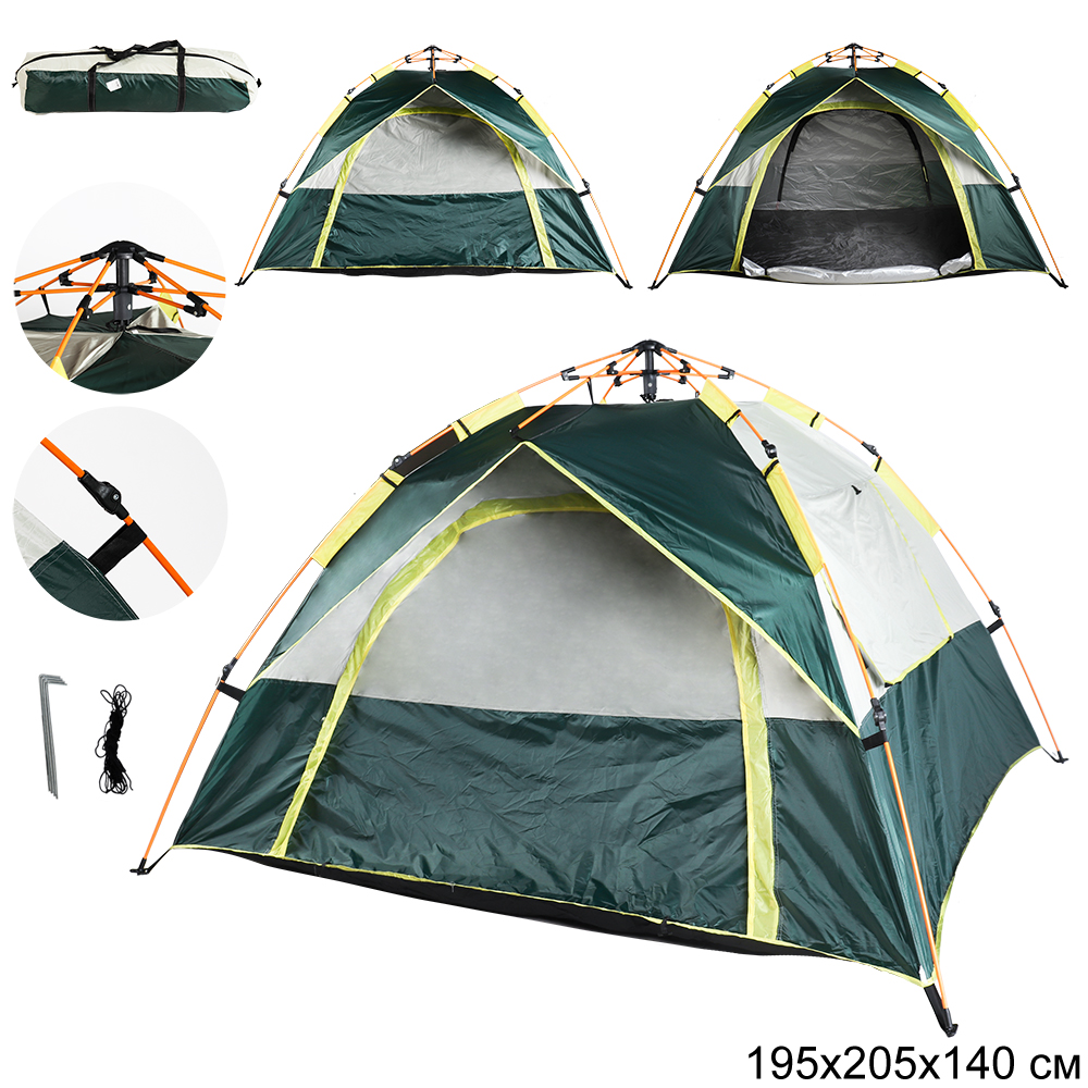 Основное отличие данного типа палаток - простота и быстрота установки и складывания. Вам нужно только достать ее из чехла, нажать на центральную стойку и палатка моментально разложится самостоятельно подобно зонту.