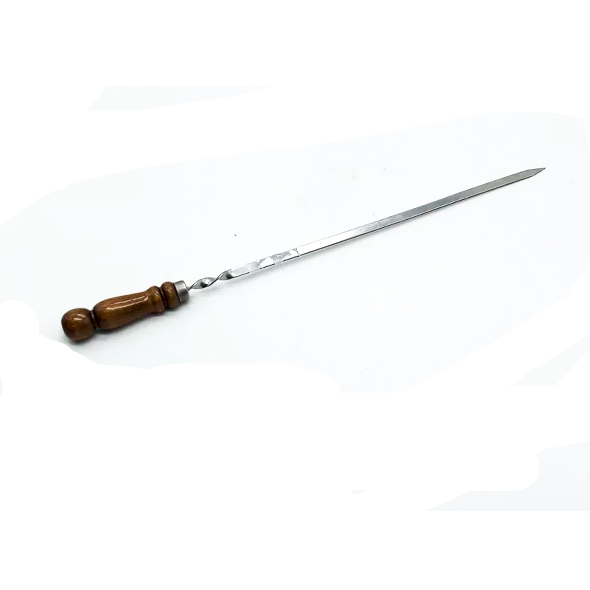 - деревянная ручка позволяет легко нанизывать мясо на заостренный конец и исключает термические ожоги рук при переворачивании мяса.