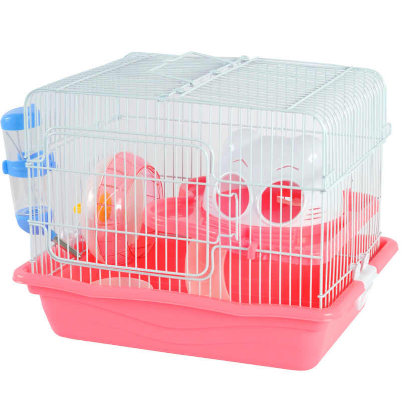 В комплектацию клетки входит все самое необходимое для вашего маленького друга-беговое колесо d-11см, автопоилка 60 мл, домик 13*8*11см, горка, кормушка.