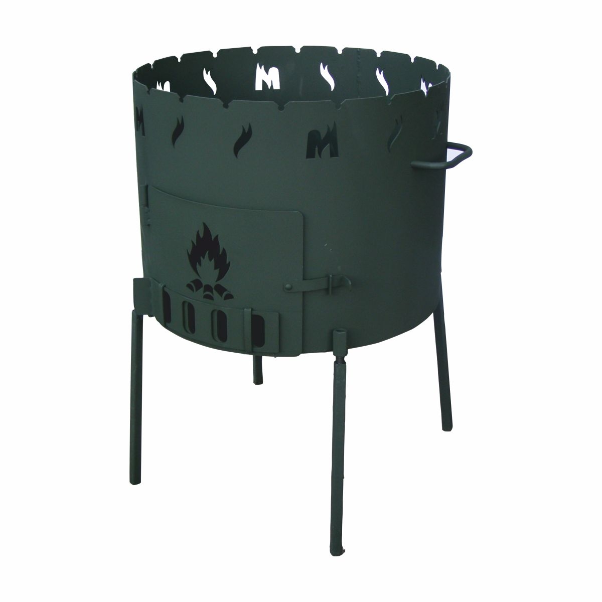 Ножки у учага съемные, сборка-разборка не составят труда. Есть дверца для закладки дров, колосник, чтобы дно нашего очага не прогорало.